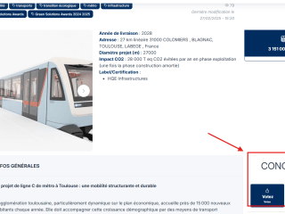 Dans l’édition 2025, la ligne C de métro de Toulouse est en compétition avec 200 candidats de 26 pays différents, alors soutenez notre projet toulousain !